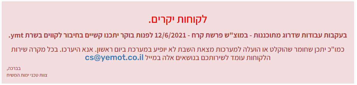 • לפעמים לא מופיע מעבר לניהול המערכת מהפורום