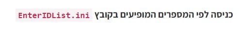 @מזדה אתה צודק, אבל שים לב שהוא שאל לגבי קובץ EnterIDList.ini שבו כותבים רק רשימה של מספרים מורשים, אתה מדבר על הוספת שם לזיהוי ואת זה מכניסים בקובץ EnterIDValName.ini.