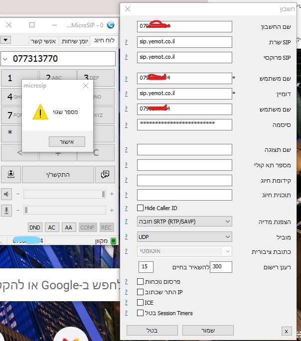 • בעיה בהתחברות לsip במרכזיה החדשה של ימות