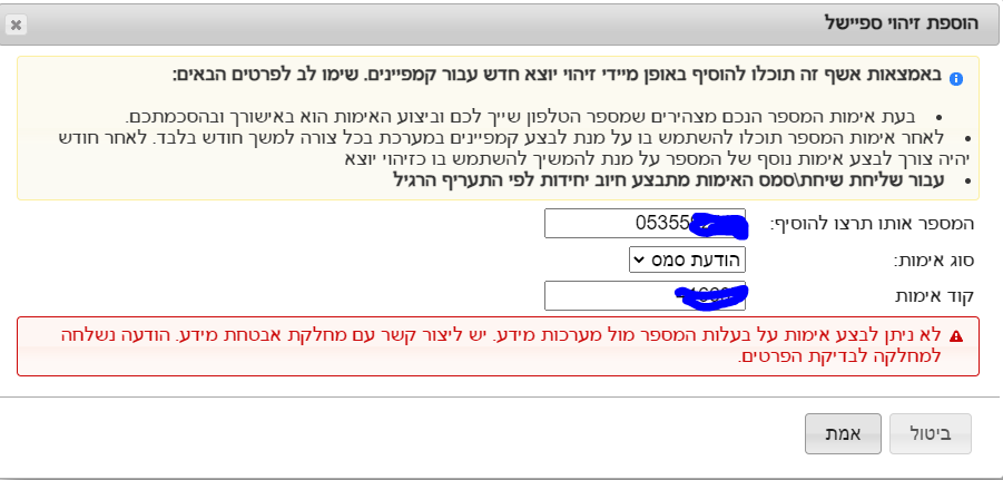 • שגיאה בהוספת מספר ספיישל