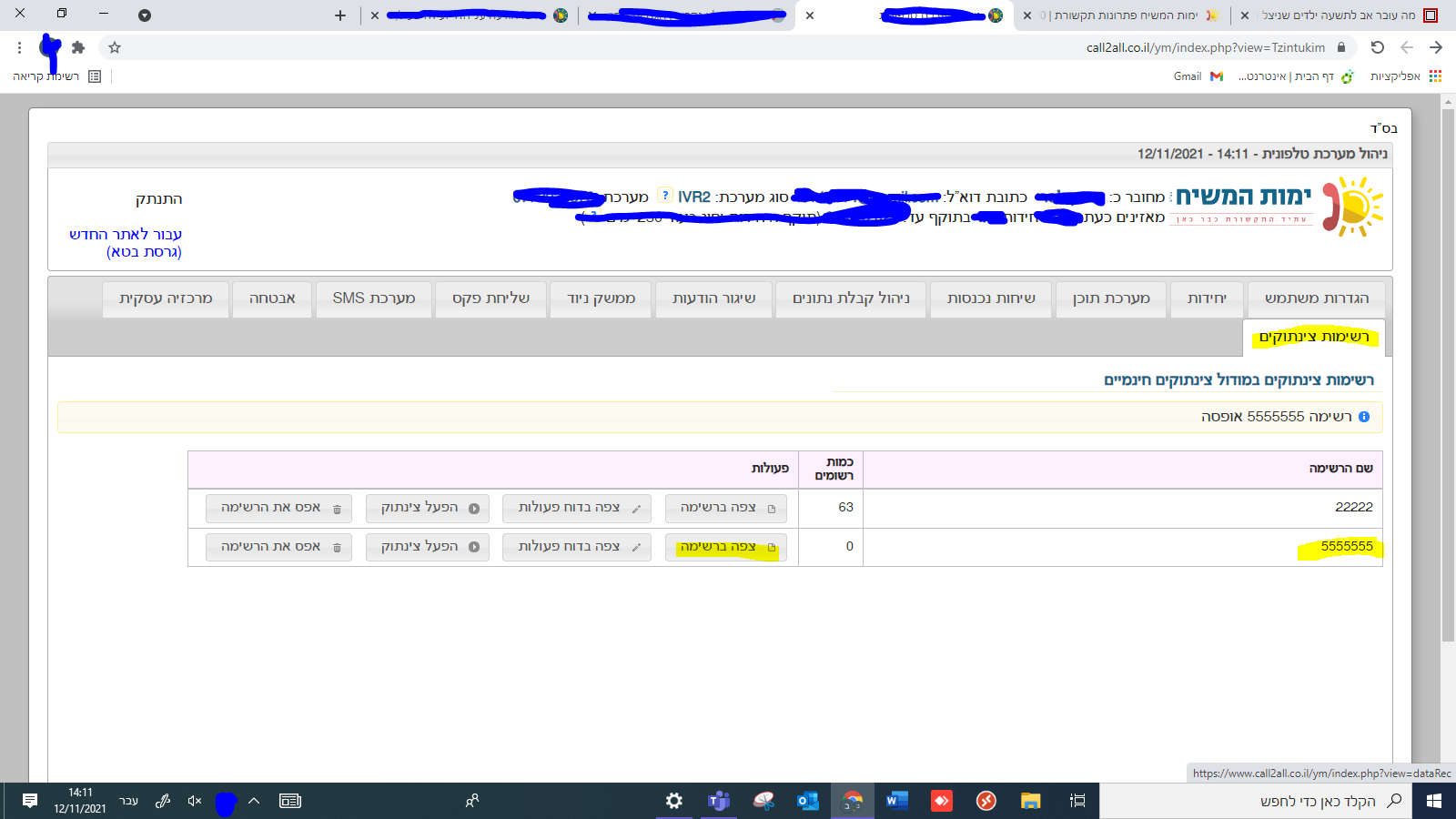 @מנסה תודה רבה. עזר לי מאד. האם יש אפשרות לקבל דו"ח של רשימת הת.ז שנכנסו למערכת סיום שיחה?