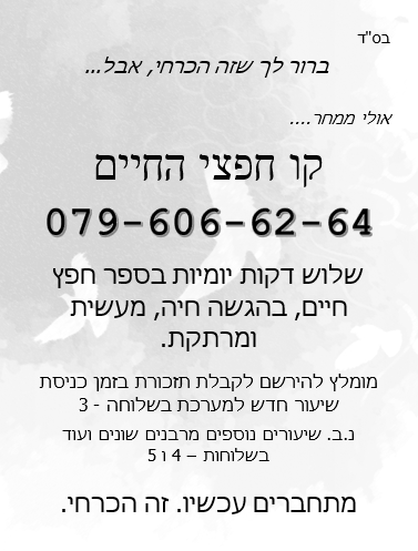 • קו "חפצי החיים" - שלש דקות יומיות בספר "חפץ חיים"