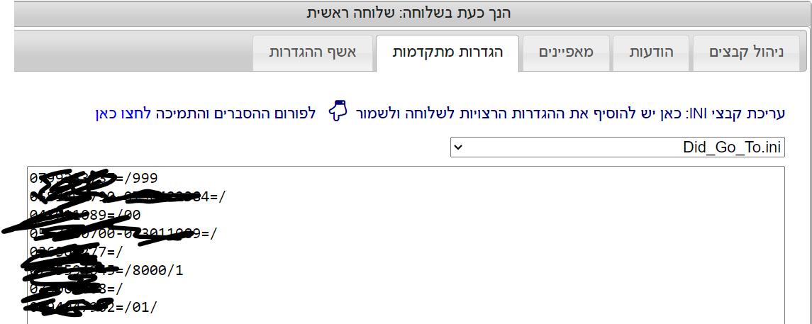 לדוג' מספר 035050XXX היה מופנה מלכתחילה לתפריט הראשי של הקו וע"י כניסה לקובץ Did Go To.ini בשלוחה הראשית הייתי יכול לשנות לפי בחירה לאן לנתב את המספר. כרגע זה פשוט לא עובד לי.