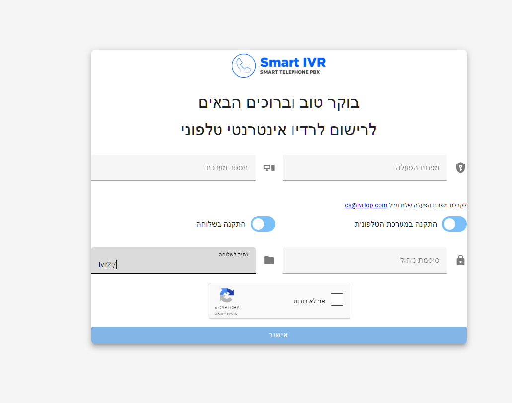 לפרטים פנו אלינו במייל cs@ivrtop.com