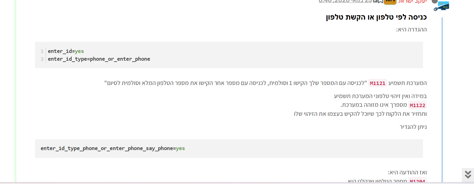 או את הזיהוי לפי טלפון/הקשה (enter_id_type=phone_or_enter_phone)?אם את הכניסה לפי זיהוי, ומחיקה של זה לא מועילה, אולי תנסה enter_id=no, לא יודע אם זה תקין, אבל מה יש להפסיד?