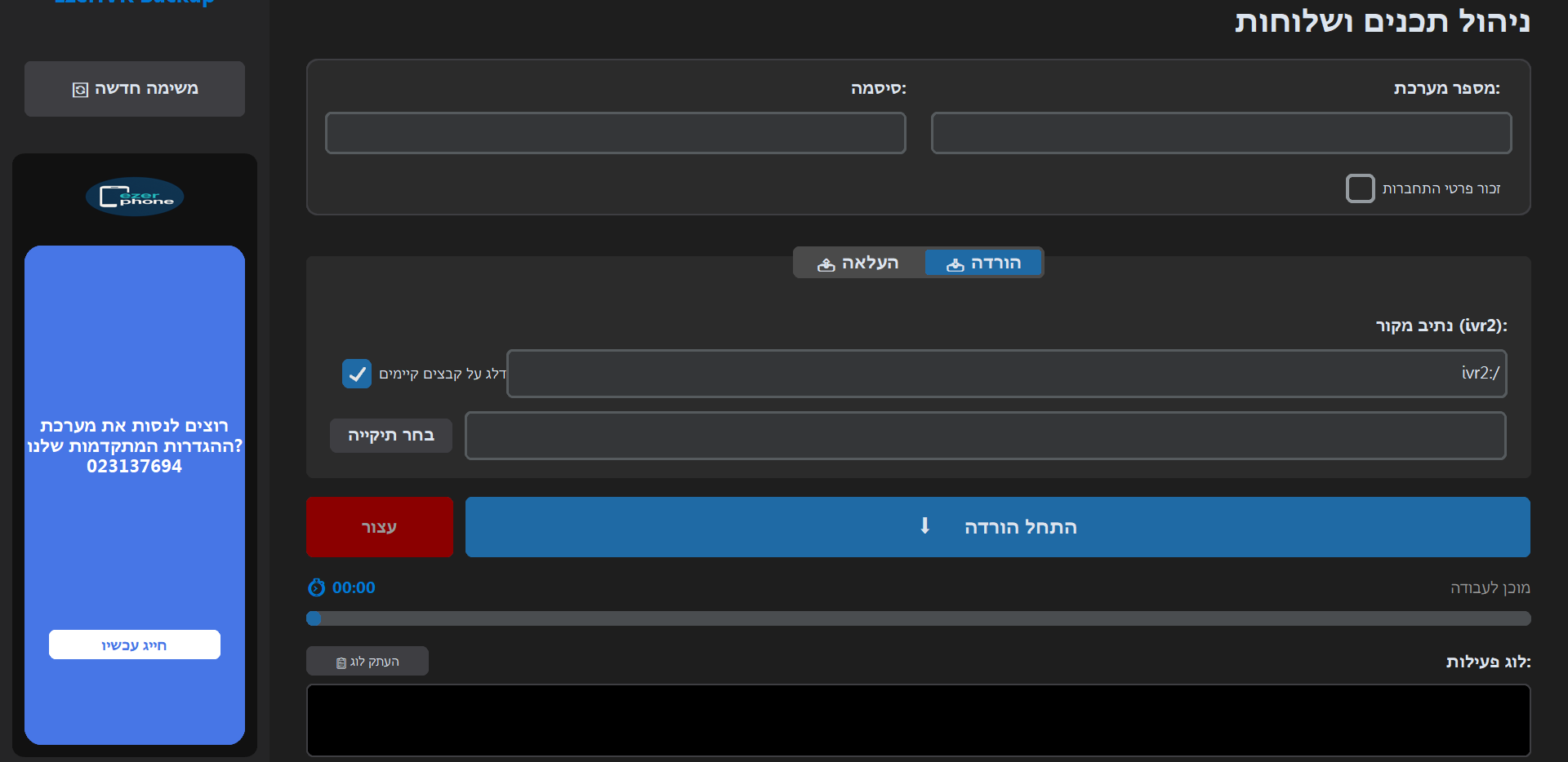 חדש!! תוכנה להורדת שלוחות שלמות והעלאה
