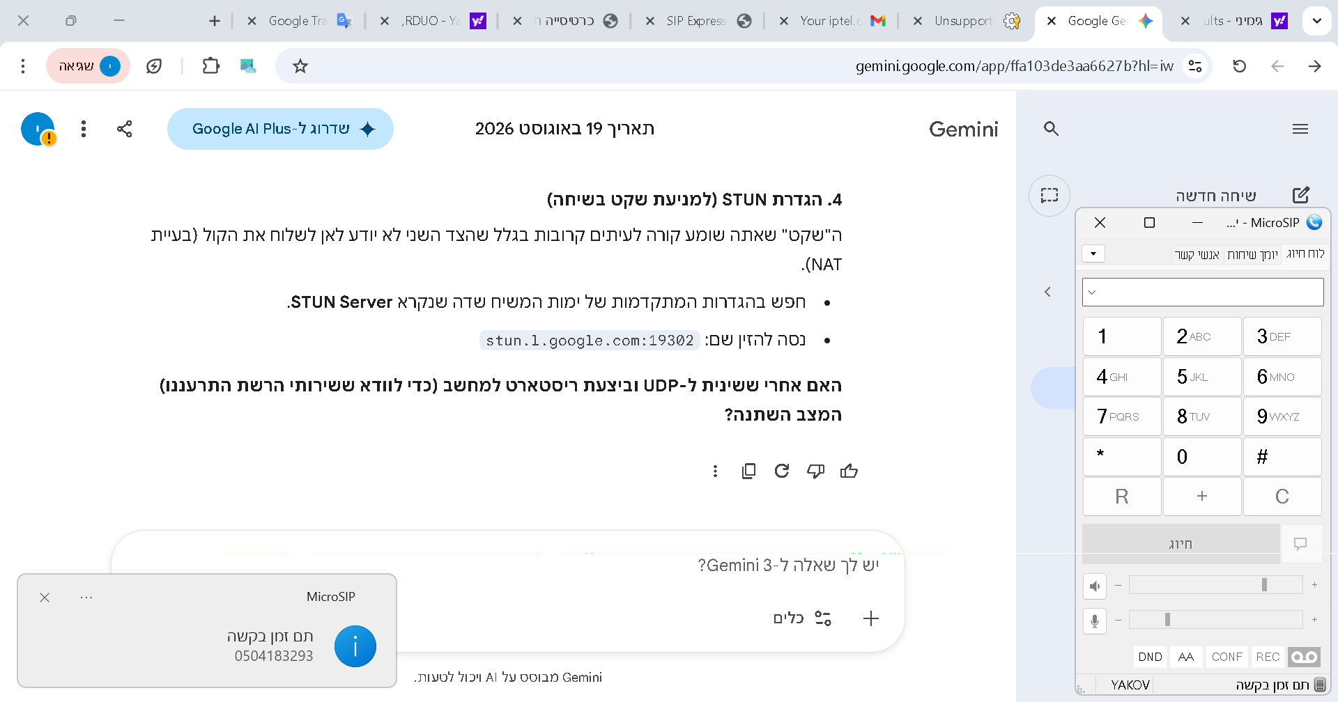 הפניה מ SIP למחשב ללא יחידות עזרה!