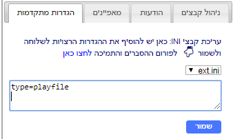 הגדרות לשלוחה ששם שומעים את ההודעות: