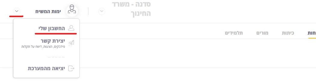 על מנת להוסיף שלוחות לממשק, יש להקליק על החץ הקטן המופיע בצד השמאלי העליון של המסך, ומיד לאחר מכן להקליק על 'החשבון שלי':