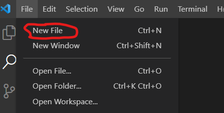 ישנם תוכנות רבות, הבחירה היא לפי הנוחות של כל אחד, אני אישית ממליץ על אחת הנפוצות ביותר: ויזואל סטודיו קוד וניתן להוריד אותה מכאן.לאחר ההורדה וההתקנה של ויזואל סטודיו קוד, נפתח את התוכנה וניצור קובץ חדש בעזרת "New file".