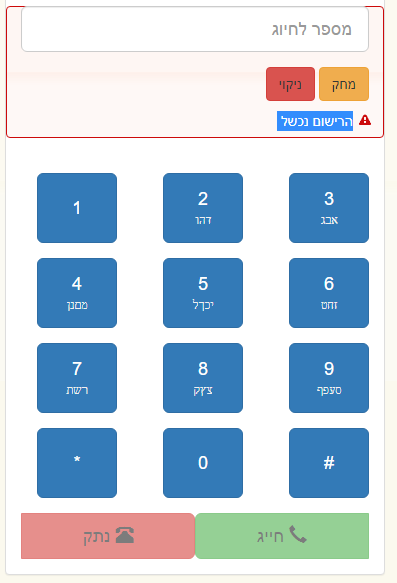 בהתחלה זה מראה על התחברות תקינה אבל לחצן ה'חייג' לא נהיה זמין..